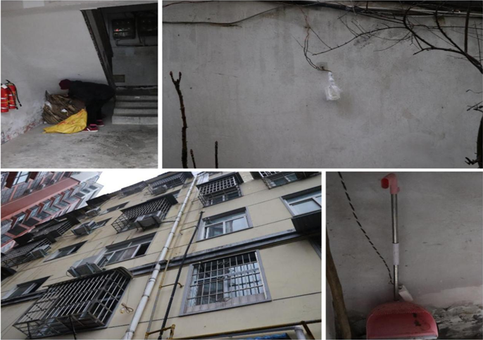 小區(qū)內(nèi)私拉電線,垃圾隨意堆放情況