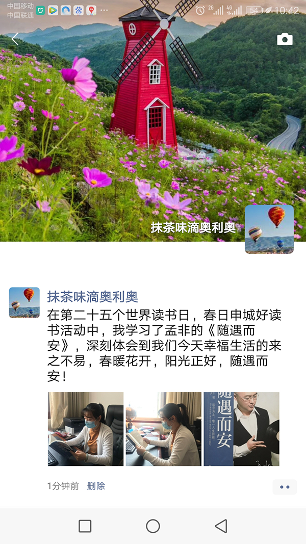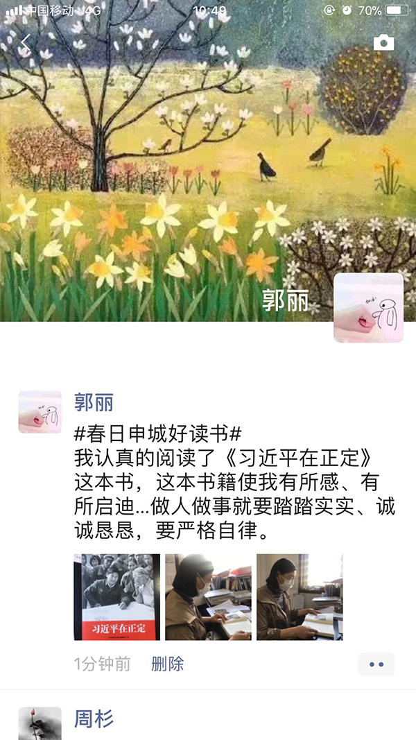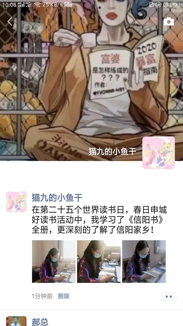2020年4月23日是第25個(gè)世界讀書日,為號召網(wǎng)絡(luò)文明傳播,公司職工紛紛積極讀書,發(fā)布到微信朋友圈。